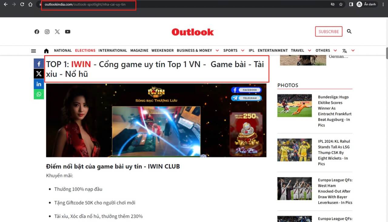 2. Outlookindia.com – Bình chọn IWIN là Cổng game uy tín Top 1 VN