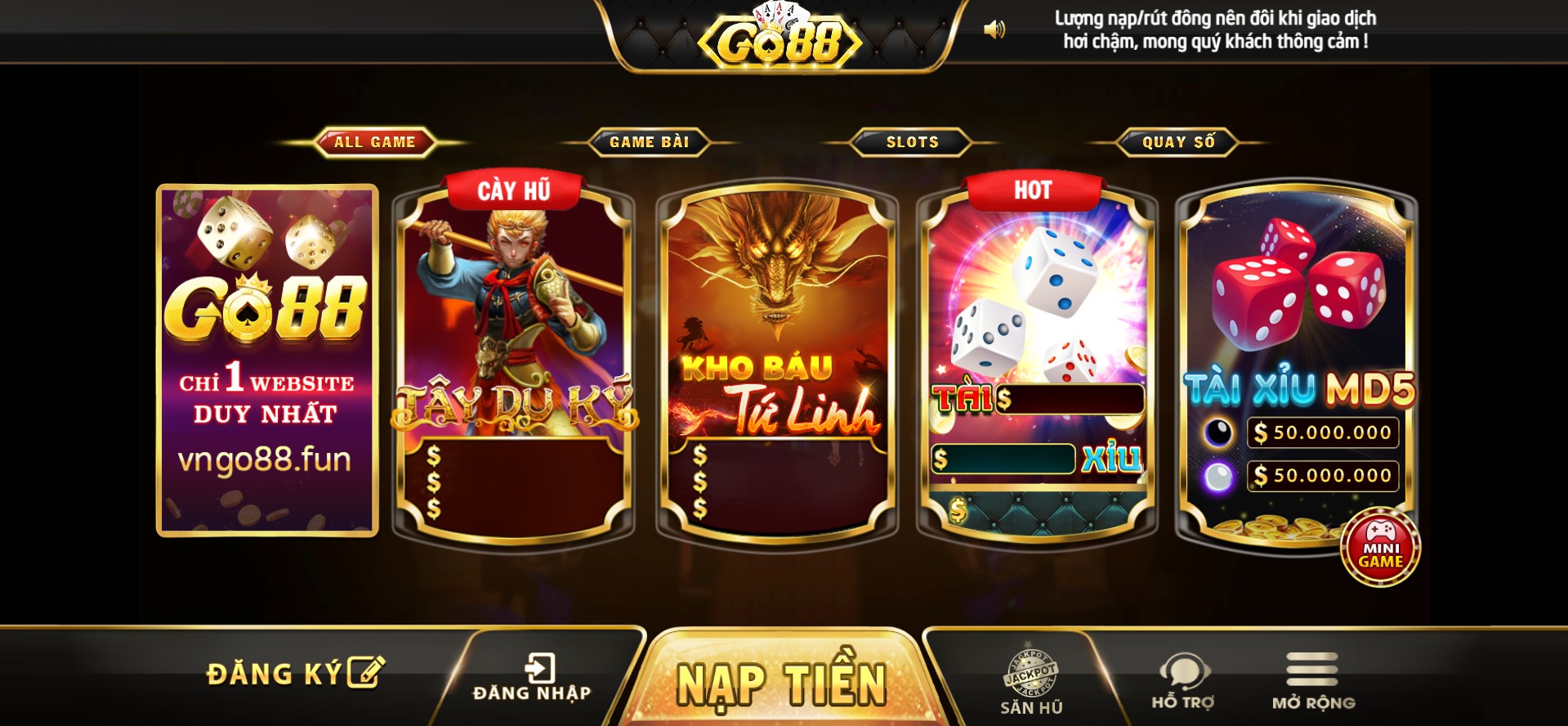 Nói về một cổng game giải trí cá cược thì chắc chắn phải đánh giá về kho game của họ. Và cổng game Go88 đã tập trung hoàn thành rất tốt các sản phẩm cá cược của mình. Go88 cung cấp các đầu game chất lượng tốt nhất cho người chơi. Một khi đã chơi tại Go88 rồi thì các anh em khó mà bỏ sang một nơi khác được.