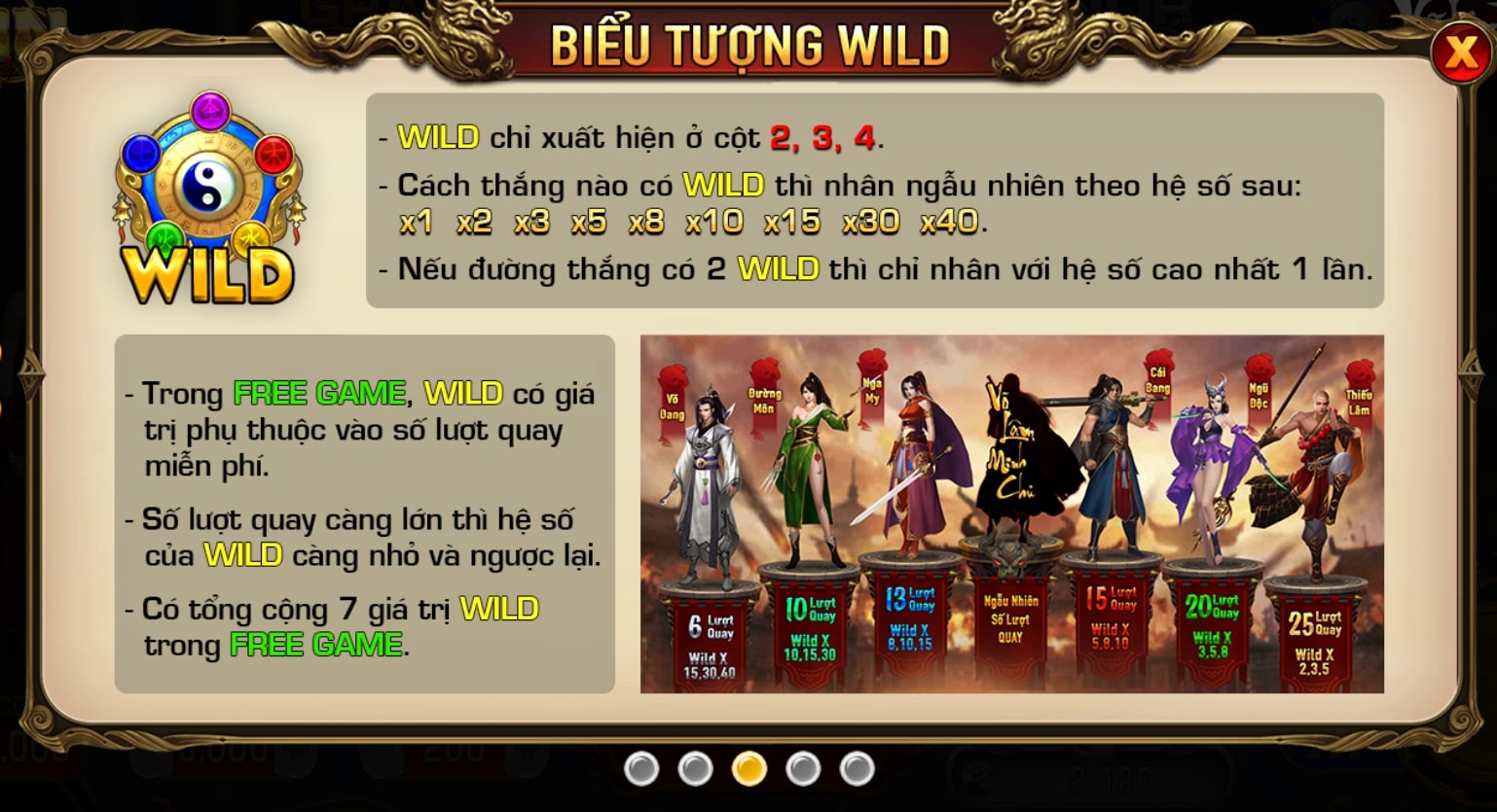 • Cách thắng nào có WILD thì nhân ngẫu nhiên theo hệ số sau: x1   x2   x3   x5  x8  x10   x15   x30   x40.